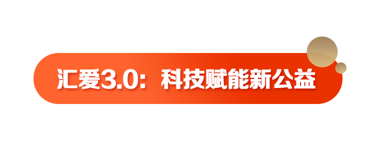 经过紧锣密鼓地筹备,“汇爱3.0”正式启动了!数字化赋能,用领先的科技和爱心慈善相融合,赋予“汇爱”更多可能,这也标志着我们进入到科技赋能新公益的全新阶段。